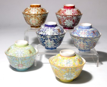 Lot Description:Six Chinese Porcelain Enamel Lidded Bowls with a Tongzhi Mark, 1862-1874
