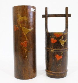 Lot Description:Two Japanese Lacquered Wood Ikebana Vases
