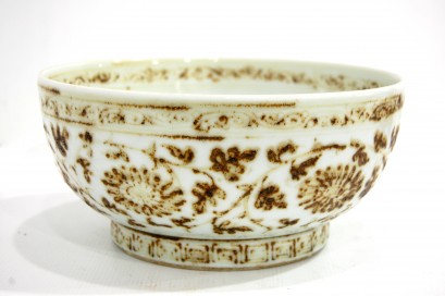 Lot #263 - A Large Porcelain Bowl, the White Glazed with a Fired-Out Copper Red Glaze