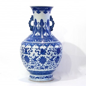 Lot Description:A Very Large Porcelain Vase, Painted in Underglaze Blue with a Band of Buddhist Emblems