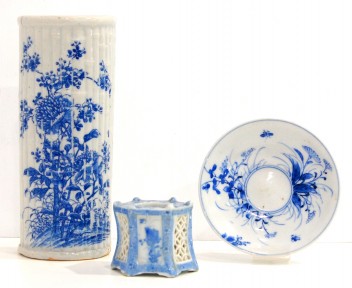Lot #279 - A Group of Chinese Porcelain, Printed Blue Decoration on Chopstick Holder & Dish +