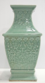 Lot Description:A Chinese Porcelain Vase, the Design Moulded under the Celadon Glaze, an Impressed Qianlong Mark