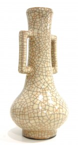Lot Description:A Chinese Crackle Glazed Bottle Vase with Rectangular Handles