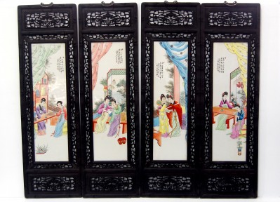 Lot Description:Four Porcelain Panels, Painted with Beauties in Leisurely Pursuits with Signature