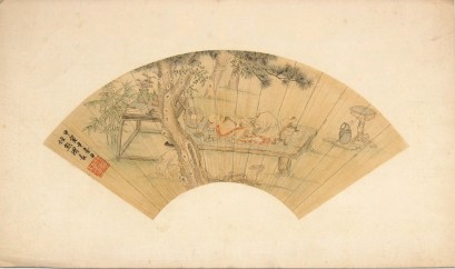 Lot Description:A scholar resting under a pine tree, beside his table of books