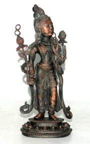 Lot Description:A Copper Diety, Standing Looking Away from the Viewer, Wearing a Tall Crown & Elaborate Jewellery