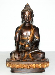 Lot Description:A Large Copper & Bronze Tibetan Buddha, with Highlights in Gilt, the Fine Featured Face with a Slender Neck