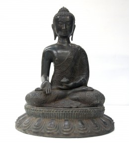 Lot #339 - A Large Elegant Thai Bronze Buddha, a Serene Young Face, Seated on Lotus Throne