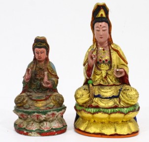 Lot Description:Two Chinese Carved Wooden Figures of Guanyin