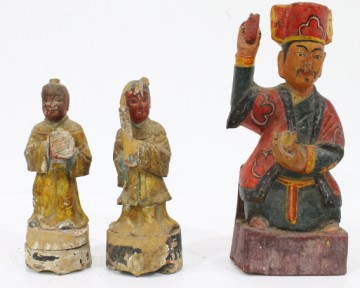 Lot Description:Three Chinese Carved Wood Painted Taoist Figures, 19th/20th Century