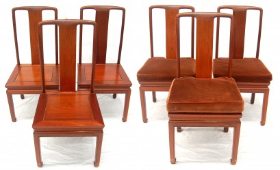 Lot Description:A Set of Six Chinese Hardwood Chairs, High Back & Floating Panel Seats