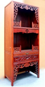 Lot Description:A Tall Carved Chinese Rosewood Two Tier Cabinet with Single Drawer & Pull-out Shelf