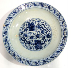Lot Description:A Shallow Porcelain Dish with a Flat Rim, painted with Double Phoenix, Xuande Mark, possibly late Qing or Republic Period