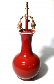 Lot Description:A Chinse Porcelain Red Glazed Vase, Converted to a Lamp Base, 20th Century