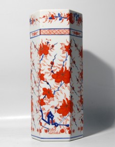 Lot Description:A Chinese Ceramic Hexagonal Shaped Vase, Overglaze Iron Red & Blue, circa 1980