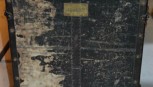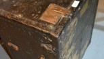 Lot Description:Vintage English pressed metal/leather travel trunk on castors