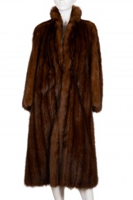 full length with two concealed slip pockets, high neck collar and silk lining, labelled 'Thomas E. McElroy'
