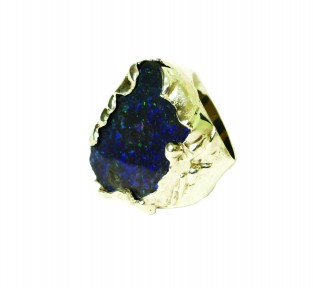 the free-form mount set with a large polished piece of dark blue opal, stamped STG and HMJ. -