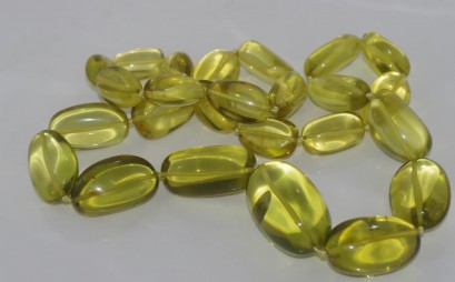 Lot Description:Matinee length green amber bead necklace