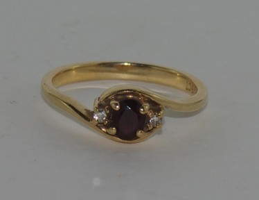 Lot Description:9ct yellow gold, garnet & diamond set ring
