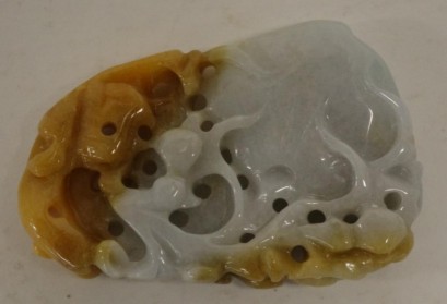 carved brown lizard on pierced white jade. H6cms approx. -