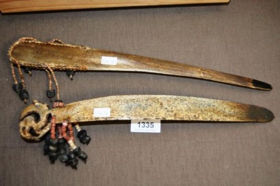 Lot Description:2 x vintage New Guinea bone lime spatulas