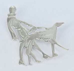 depicting a Lady with her Greyhound. Height 6.5cm. Weight 10.7g. -
