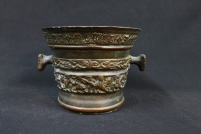 Lot #387 - Bronze Bucket with Stylisied Horse Handles, features decorative banding highlighting a battle