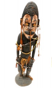 decoraated with natural ochres, shells and natural fibres. Tambanum Village, Sepik River, PNG