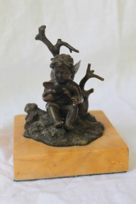 Lot #346 - A bronze figure of a cupid on a marble stand