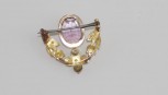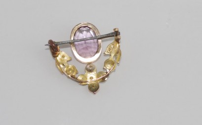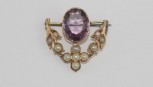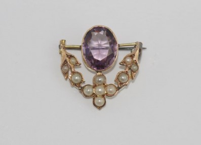 Lot Description:Victorian 9ct gold amethyst & seed pearl brooch