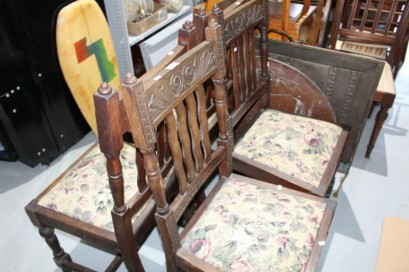 Lot Description:Set of 4 oak Jacobean style dining chairs with