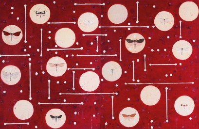 each panel signed, titled and dated verso: Peter Stevens ‘04 / Moths + Men; bears Tim Olsen Gallery label verso -