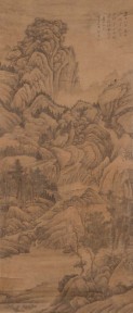 Lot Description:A Chinese scroll signed by Gu Yun, Finely depicting a mountain landscape