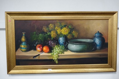"Still life Fruit and Vases"