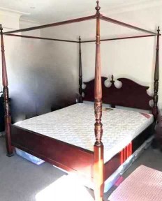 Lot Description:A Teak European Style Four Post Bed, King Size