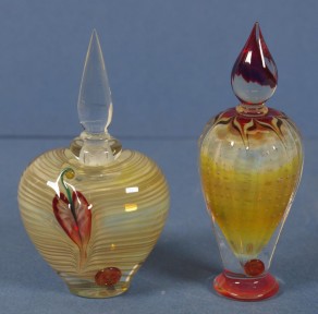 Lot Description:Two art glass perfume bottles by Richard Clements