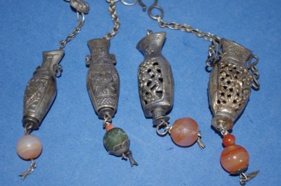 each of an ornamental Chinese vase, with suspended stone beads. -
