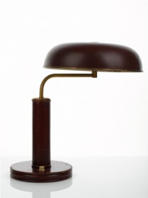 c.1940, in the style of Hermes, with dimmer switch and swivel shade, partial label to the shade interior reading, '…neck/Bear & Co Paris'