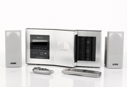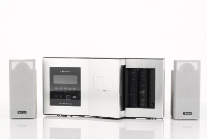 Sound Space 8 System comprising 5 Disc Main Bank System Unit, two satellite speakers on stands, a subwoofer/power amplifier and two remote controls (6) -