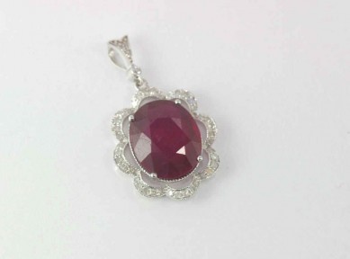comprising ruby (treated) 8.07ct, TDW=0.32ct, weight: approx 3.83 grams, size: approx 3cm including bale -