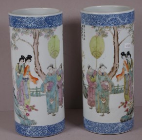 Lot #1592 - Pair Chinese cylindrical ceramic vases