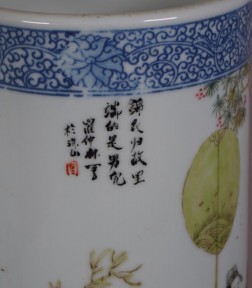 Lot Description:Pair Chinese cylindrical ceramic vases