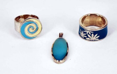 Lot #555 - A Blue Enamel Sterling Silver Set