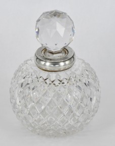 diamond pattern glass body, sterling silver rim, Sampson Mordan & Co, London 1894, with stopper. Height 15cm. Also stamped with the Russian sterling silver mark. -
