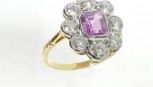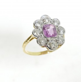 Lot Description:An Art Deco style 18ct. gold diamond and pink sapphire ring