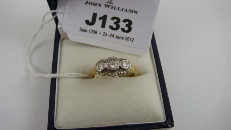 Lot #J133 - Attractive vintage triple cluster diamond ring. 18 ct yellow gold shank