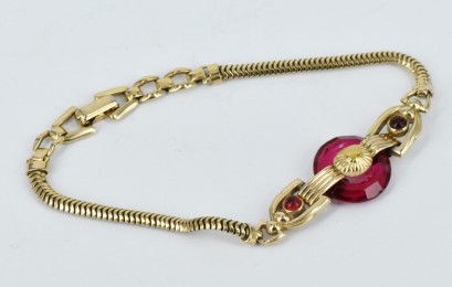 pink glass and gold plated finial. Marked Reisler 025. Weight 8.3g. Length 19cm. -