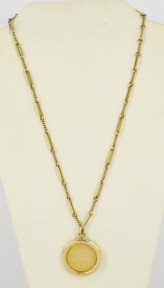 set with a coin 'Presented by the Warwick Farm racing club.... 19th May 1894'. Diameter pendant 3cm. Total weight 28.3g. -