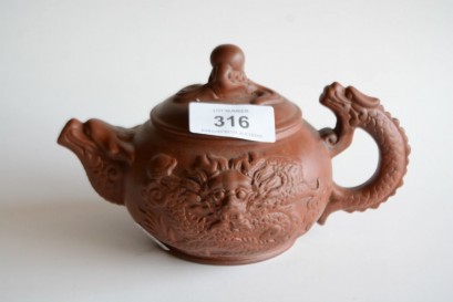 Lot #316 - Chinese Yixing teapot with embossed dragon